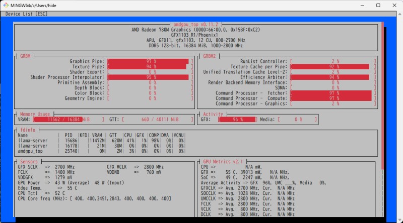 当方の環境では、この設定でRadeon780Mでの推論が動くようになった。